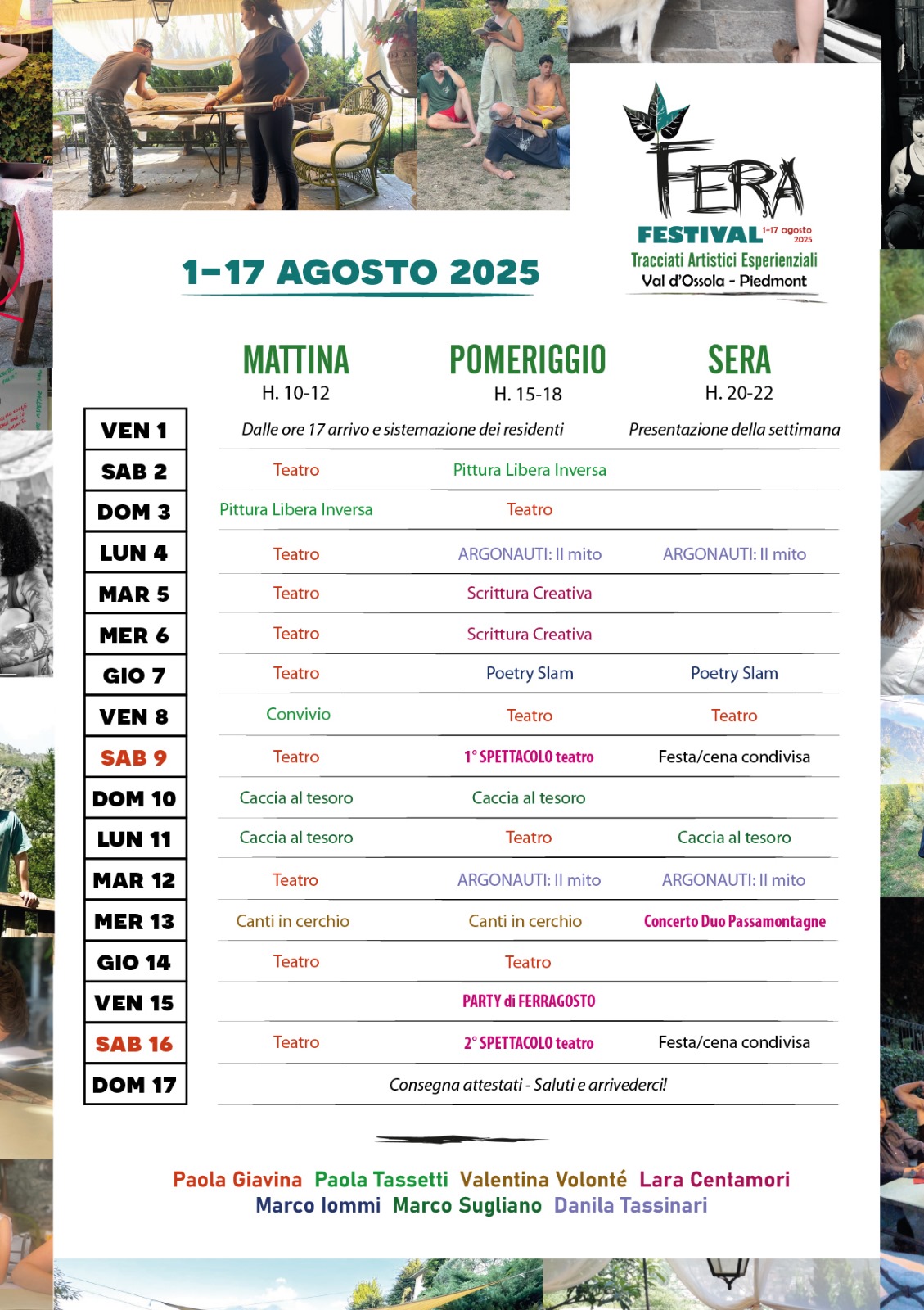 Dal 1° al 17 agosto 2025 è possibile partecipare alle giornate esperienziali artistiche del FERA Festival Residenziale 2025.